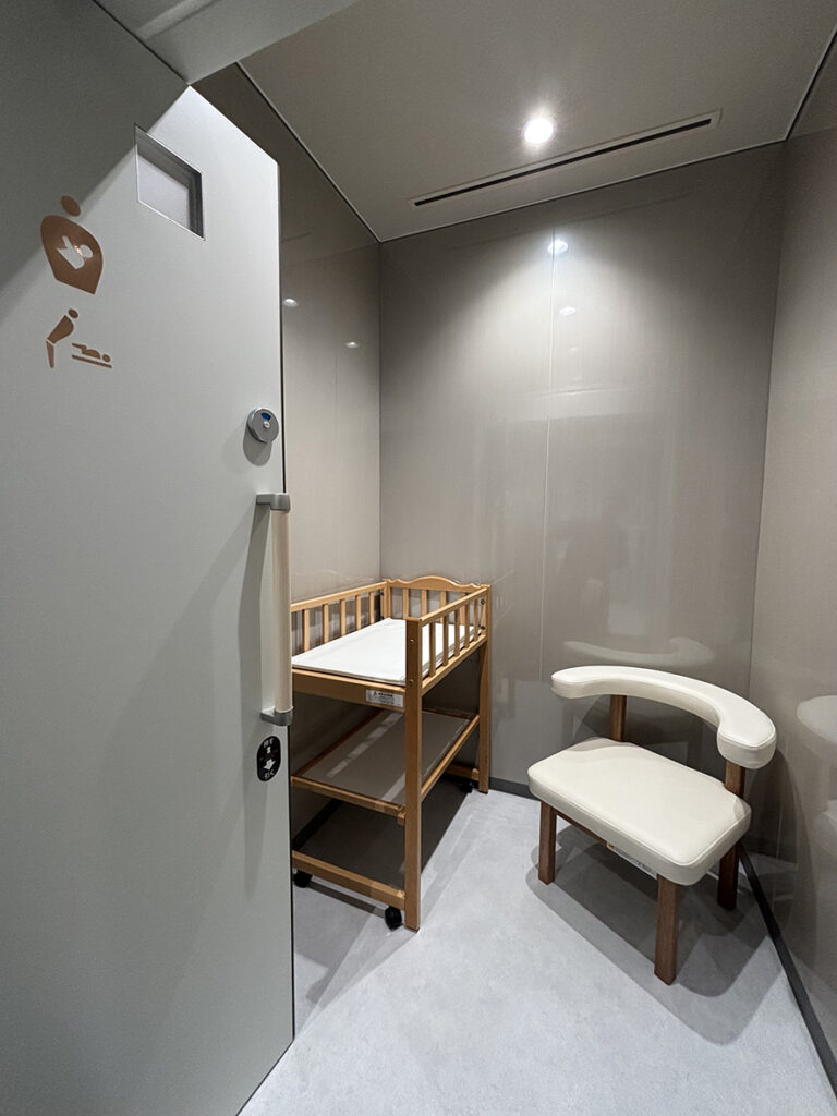 おむつ替えのスペースは2号館に二箇所、授乳室と多目的トイレ内にあります。